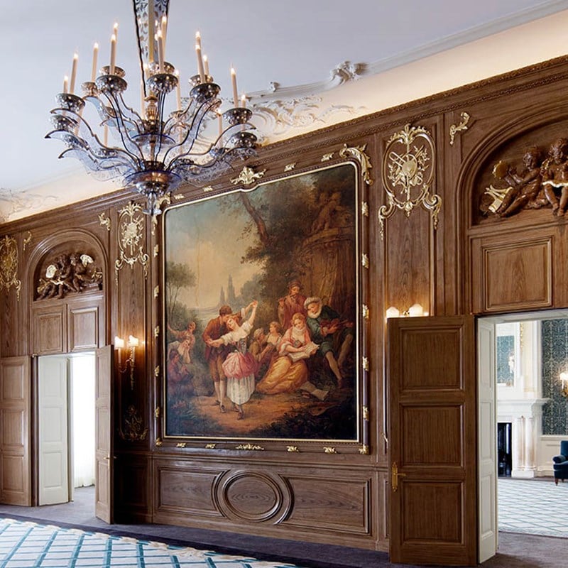 With original features such as art deco ironwork tassels by Basil Ionides and winged Renaissance-style cherubs over the doors, the French Salon is an elegant and atmospheric room in which to hold a business or social event. It also features a striking mural of a dancing couple, uncovered when the room was last refurbished. The French Salon can be taken in conjunction with the connecting Drawing Room, to accommodate a greater number of guests.